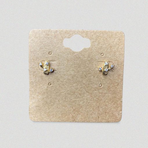 Par de brinco dourado folheado a ouro em formato de cacto com detalhes de strass. 1 ano de garantia
