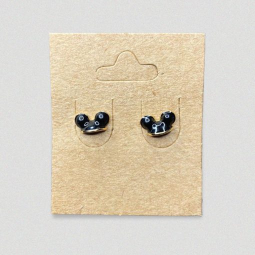 Par de brinco com orelha do Mickey preta com detalhes em dourado, folheado a ouro. Garantia de 1 ano.
